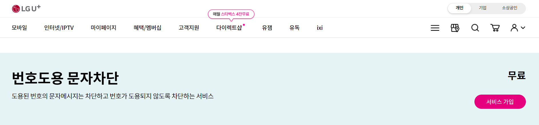 통신사 홈페이지 접속(알뜰폰 포함) → 검색창에 “번호도용 문자차단” 검색 → 가입(무료)