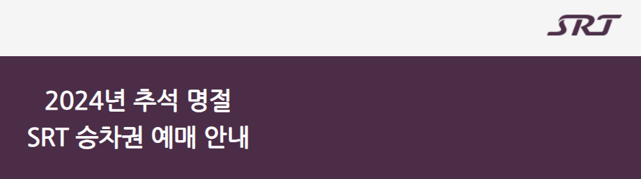 * 잔여석 판매 : 2024. 8. 29. 15:00부터 역 창구·SRT앱·홈페이지 등에서 상시 구매가능